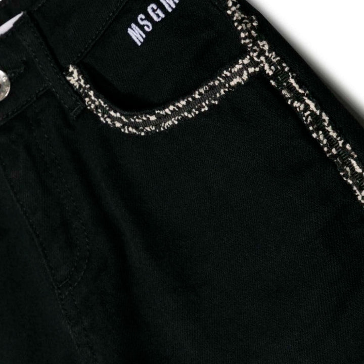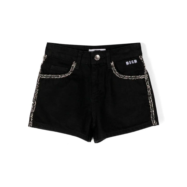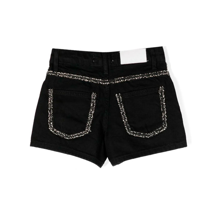 Girls black contrasting-trim denim shorts with embroidered logo at the leg and concealed fly and button fastening.