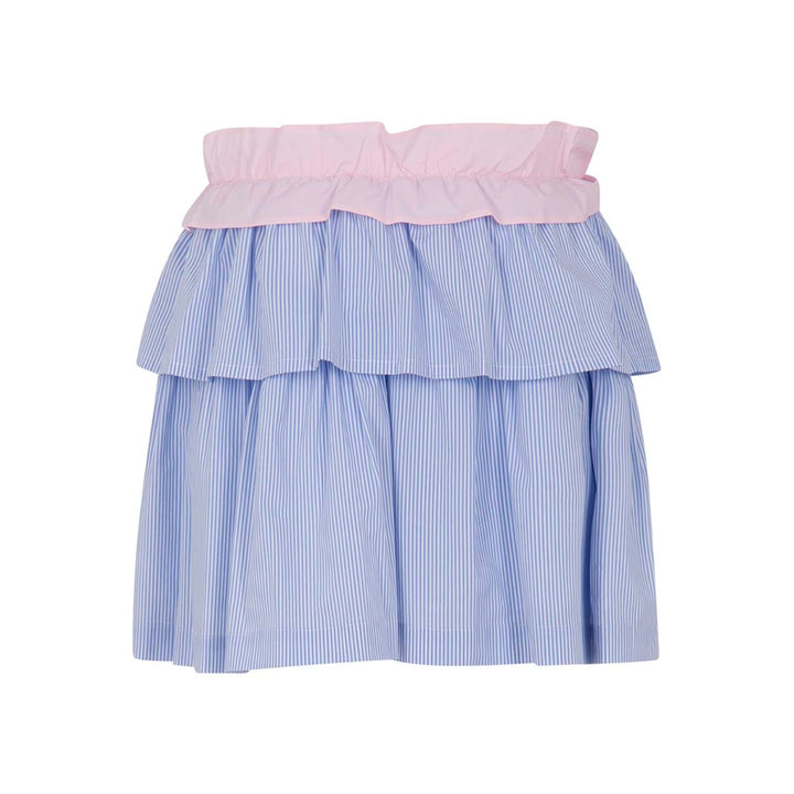 Pretty and feminine for girls, this blue and white striped skirt is by Italian designer MSGM. In a tiered layered design which creates a full and flared silhouette, the skirt is made in lightweight cotton poplin and has a part voile lining. The waistband is comfortably elasticated and has a frilled trim in contrasting pale pink. Adding a touch of branding, the designer's micro logo is embroidered in white on the front.