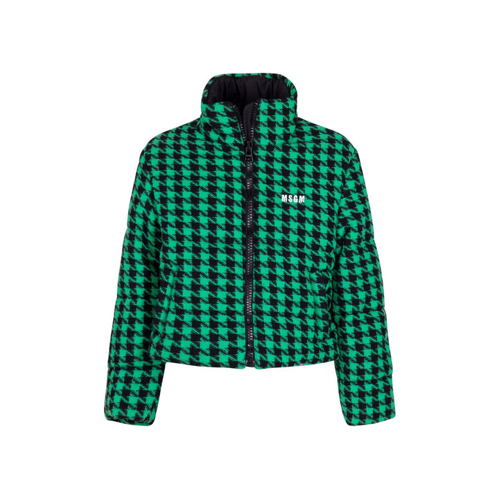 Girls Green Houndstooth-Pattern Zip-Up Jacket