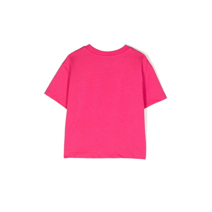 logo-print short-sleeved T-shirt from MSGM Kids featuring magenta, logo print to the front, crew neck, short sleeves, straight hem and cotton.\