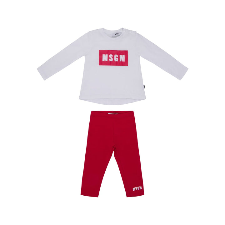 Purple and white leggings set for little girls from Italian brand MSGM, just right for those relaxed days. Both pieces of this casual outfit are made in soft jersey for ultimate comfort. The white long sleeve top has MSGMs box logo printed on the front in a purple, it has a longer rounded hem at the back, and fastens with poppers on the shoulder for quick and easy dressing. For a complete designer look, the full-length leggings have a small logo print on the cuff, with a gently elasticated waistband for comfort.