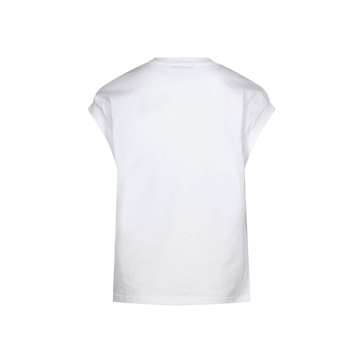 MSGM girl T shirt jersey in white with msgm slogan written on the front in painted form and beetles and flowers motifts. It is best for summer and casual wear.