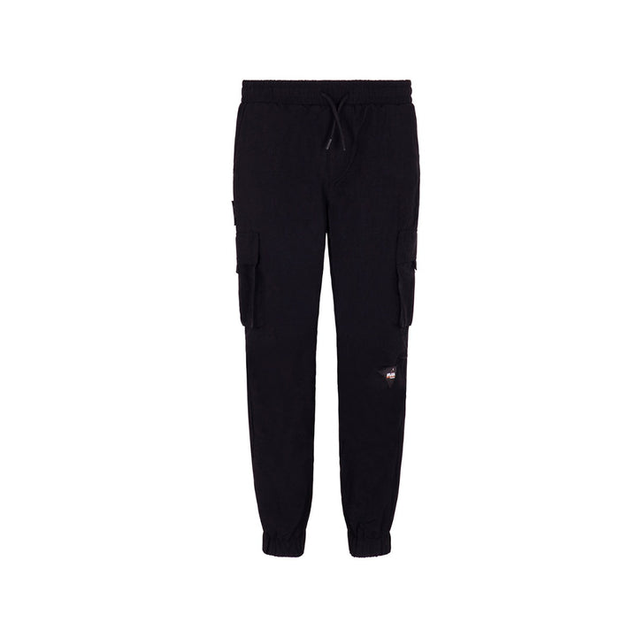 Kids Black Cotton Cargo Logo Joggers