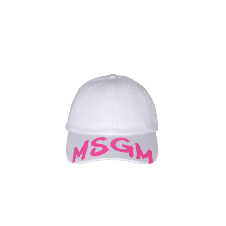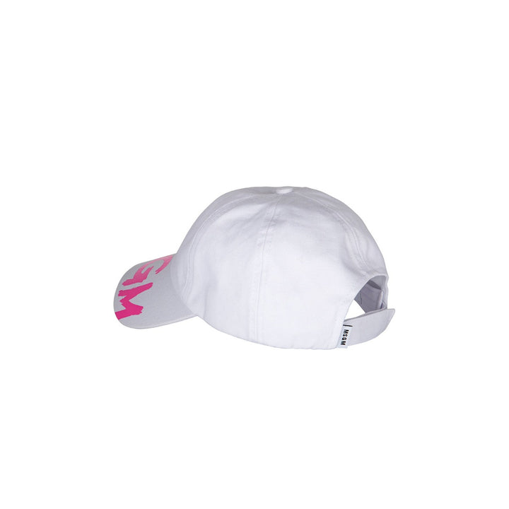 White logo-print cotton cap from MSGM Kids featuring white, cotton, logo print to the front, five-panel construction, fabric-covered button at the crown, adjustable strap to the rear and curved peak.