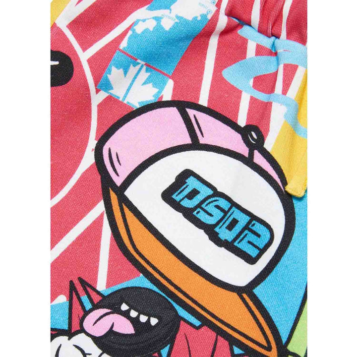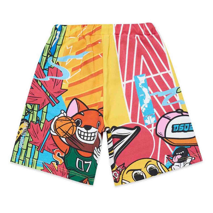 Short shorts with drawstring waistband. The garment features an allover cartoon print inspired by the Shibuya world, one of Dsquared2's signature elements, and the Sport Edtn 7 logo on the back.
