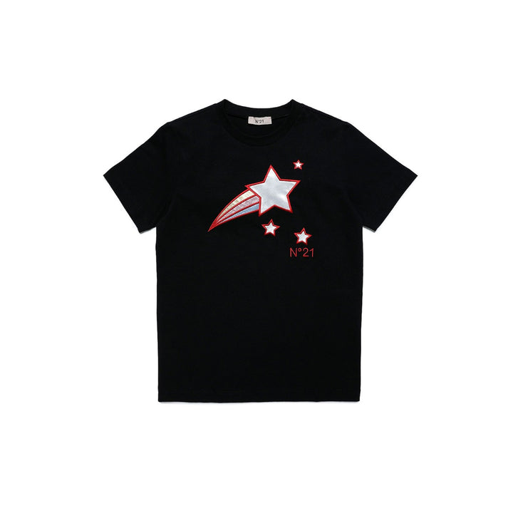 Girls Black Embroidered-Logo Cotton T-shirt