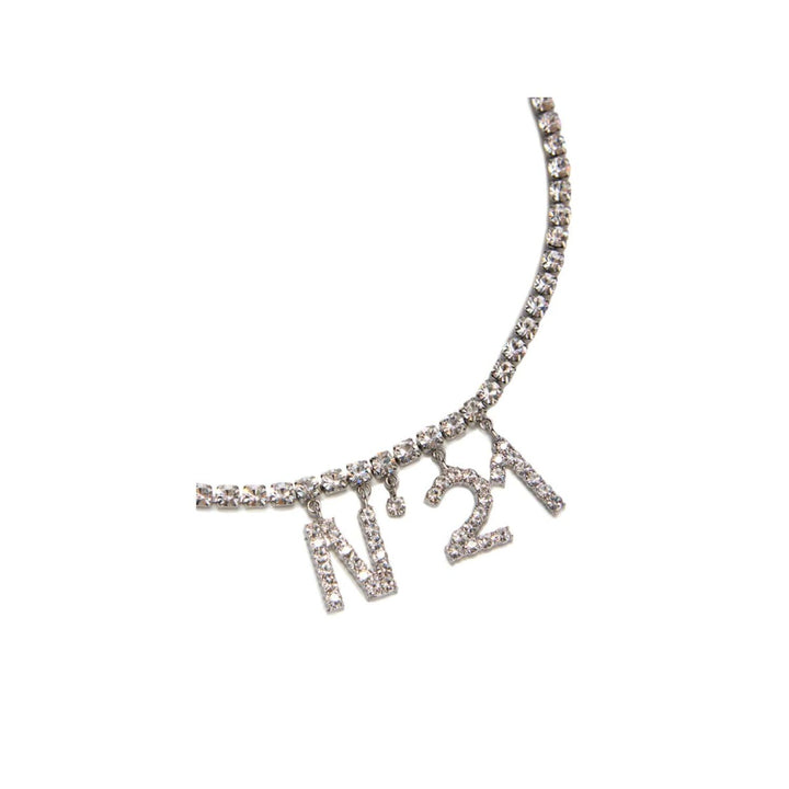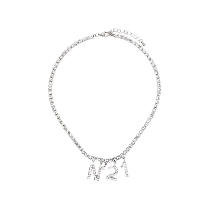 Glass-crystal logo-pendant necklace from N쨘21 Kids featuring silver-tone, glass crystal embellishment, logo pendant and lobster claw fastening.