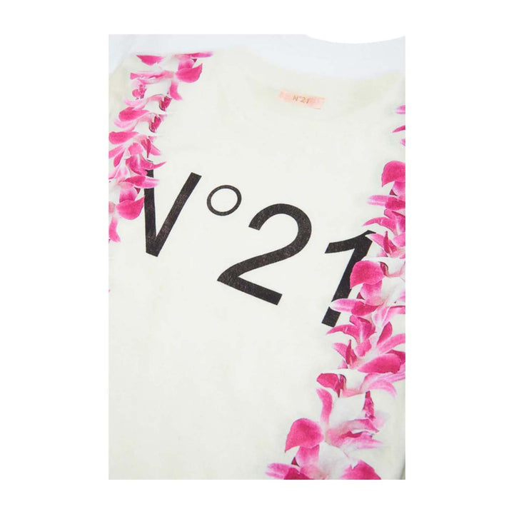 Crew-neck, short-sleeved t-shirt in cotton jersey with floral trompe-l oeil print and logo. The garment is inspired by the N21 Summer Freedom theme, which celebrates freedom with bright colours and a vital outdoor spirit. Made from 100% cotton.