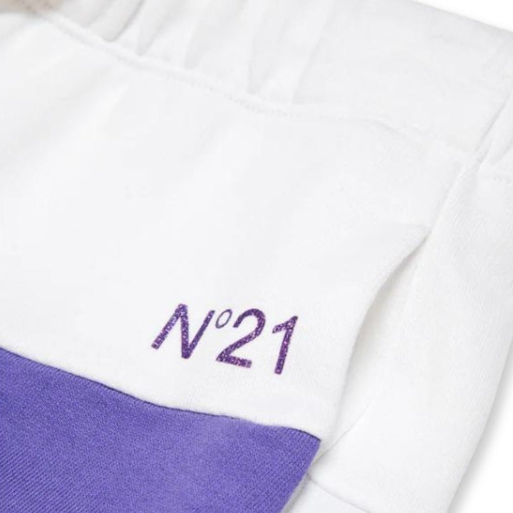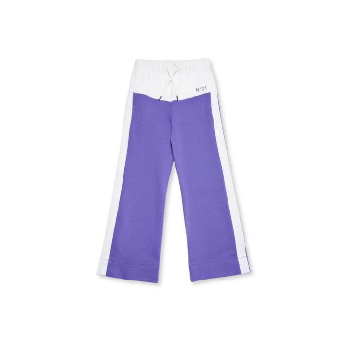Colorblock fleece pants with side bands. Drawstring waist. Wide fit. Featuring a glittered N°21 Institutional logo on the front. Front pockets and back pockets. Made of 100% cotton. A garment with a refined style, suitable for less formal occasions.