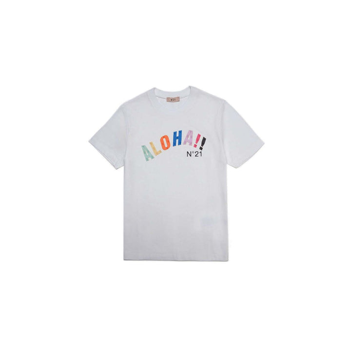 Crew-neck, short-sleeved cotton jersey T-shirt with Aloha terry application and institutional logo graphic. Made of 100% cotton.\