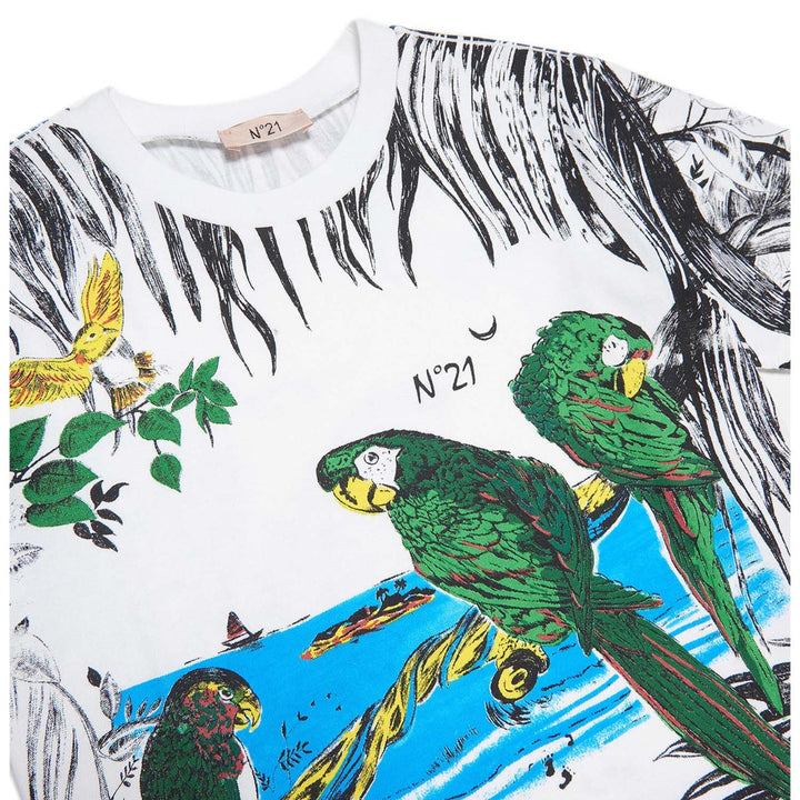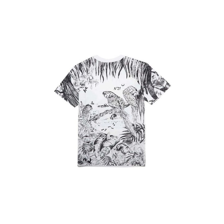 Crew-neck, short-sleeved T-shirt with tropical print showing a vintage design effect graphic. The garment is inspired by the N?21 Summer Freedom theme, which celebrates freedom with bright colours and a vital outdoor spirit. Made from 100% cotton.\
