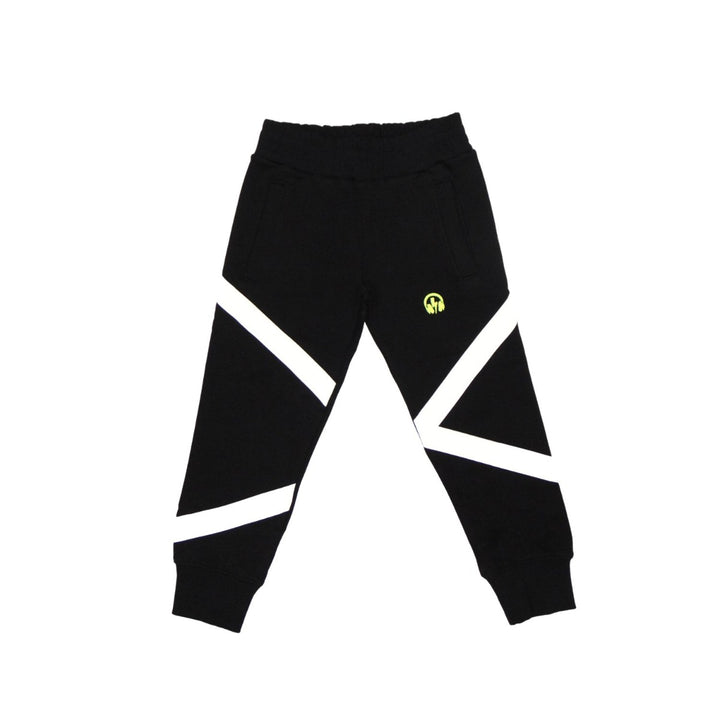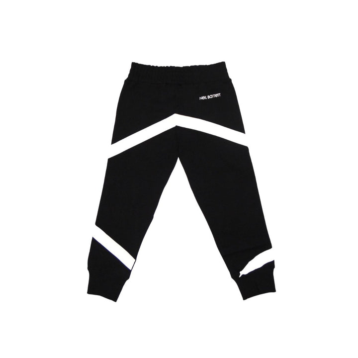 Neil Barrett kids Joggers in black with white stripes and elastic band of the waist for extra protection and comfort with pockets on both the sides.