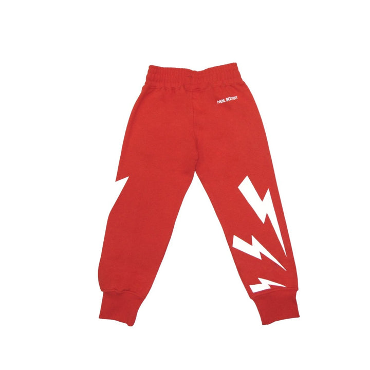 Boys red jogger description- Neil Barrett kids red joggers With a elastic band on the end of joggers. With cute prints and cotton fabric for extra comfort and ourdoor games.