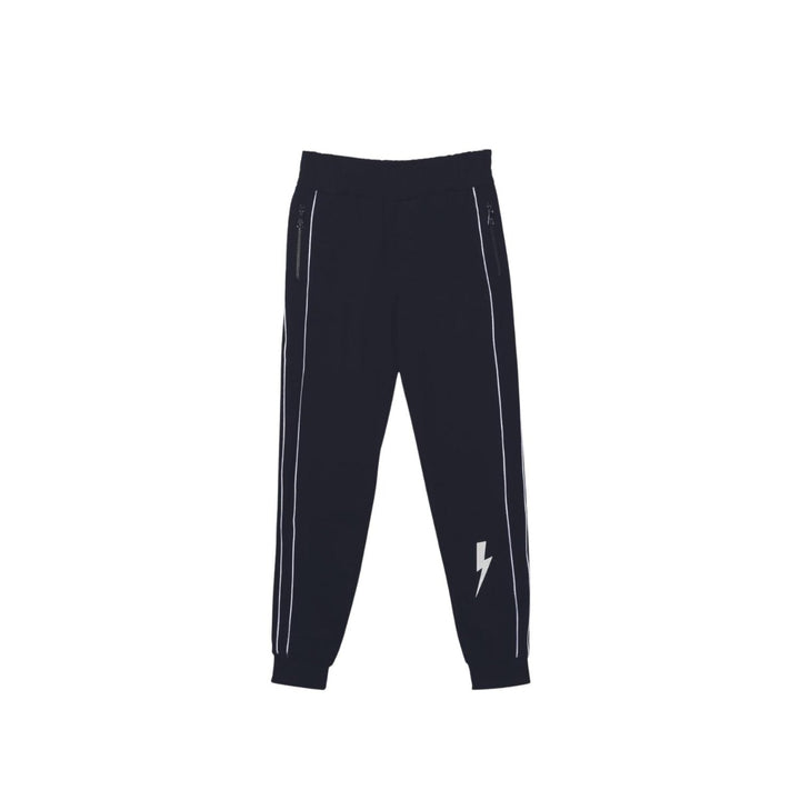 Neil Barrett Kids joggers in full black and white pipin strip on the side. With chain pockets and prints. Perfect for playdates and outdoors.
