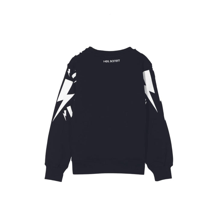 Neil Barrett kids black round neck sweat shirt with white full sleeves and lightening prints on the top of the shirt . It will be a perfect choice for your kids winter vacations and outdoor plays.