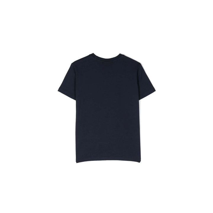Boys Navy Blue T-Shirt By Neil Barrett. Made From Soft Cotton, It Features A Signature Logo In White Colour With Spring Summer 2023 Written On Thr Front. It Has A Logo Print At The Back Neck.
