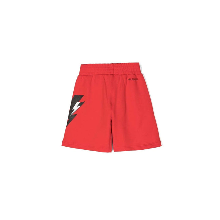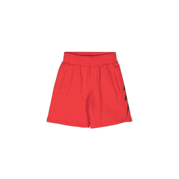 Boys Red Jogger From Neil Barrett Kids With An Elastic Waistband On The End Of Joggers. It Features Thunderbolt Prints On The Front Side And Cotton Fabric For Extra Comfort And Fit.