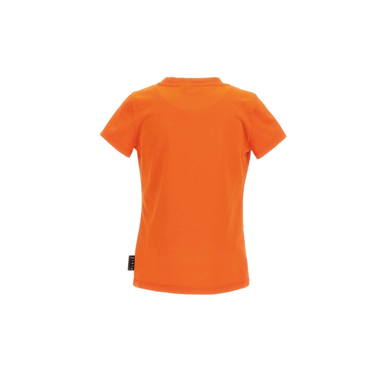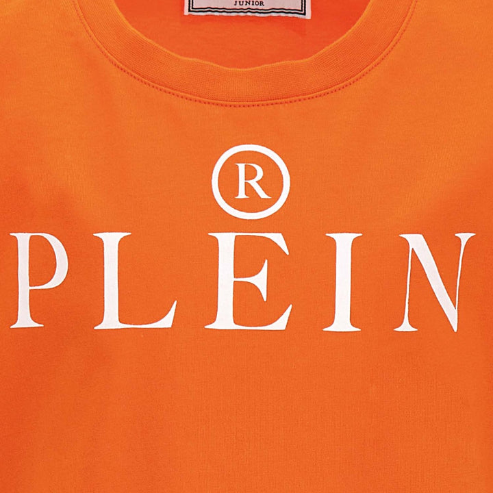 Logo-detail cotton T-shirt from Philipp Plein Junior featuring cotton, pumpkin orange, logo print to the front, short sleeves, round neck and straight hem