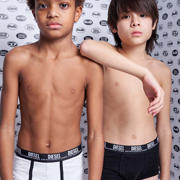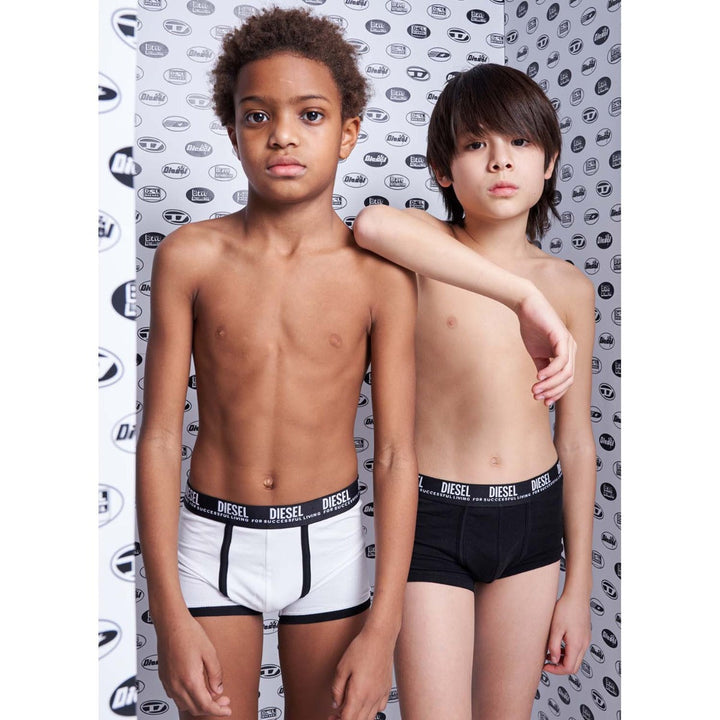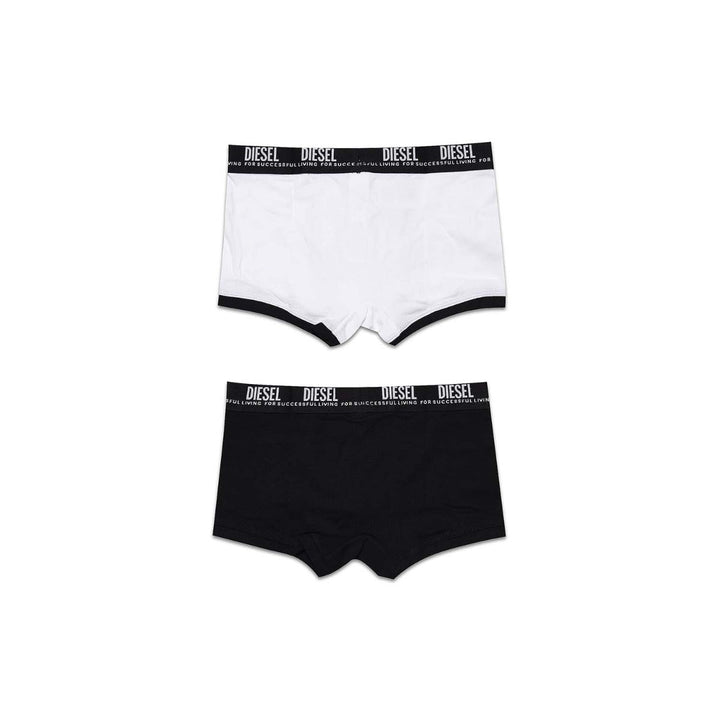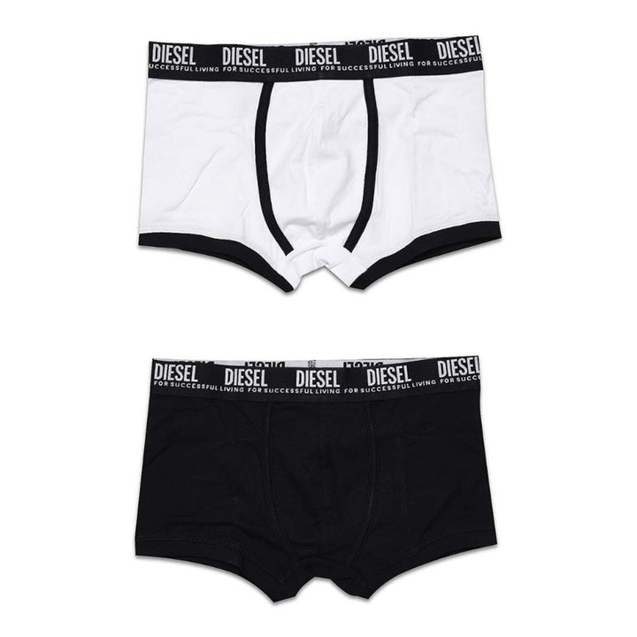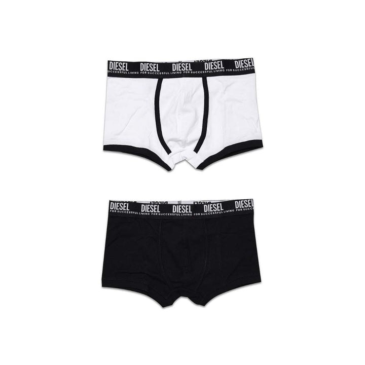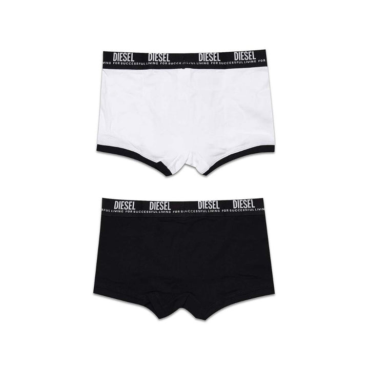 Set of two pairs of black and white boxers made from soft stretch cotton. Elastic waistband decorated with contrast Diesel logo.