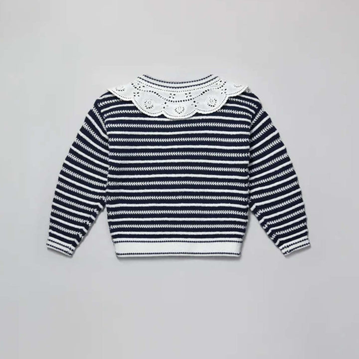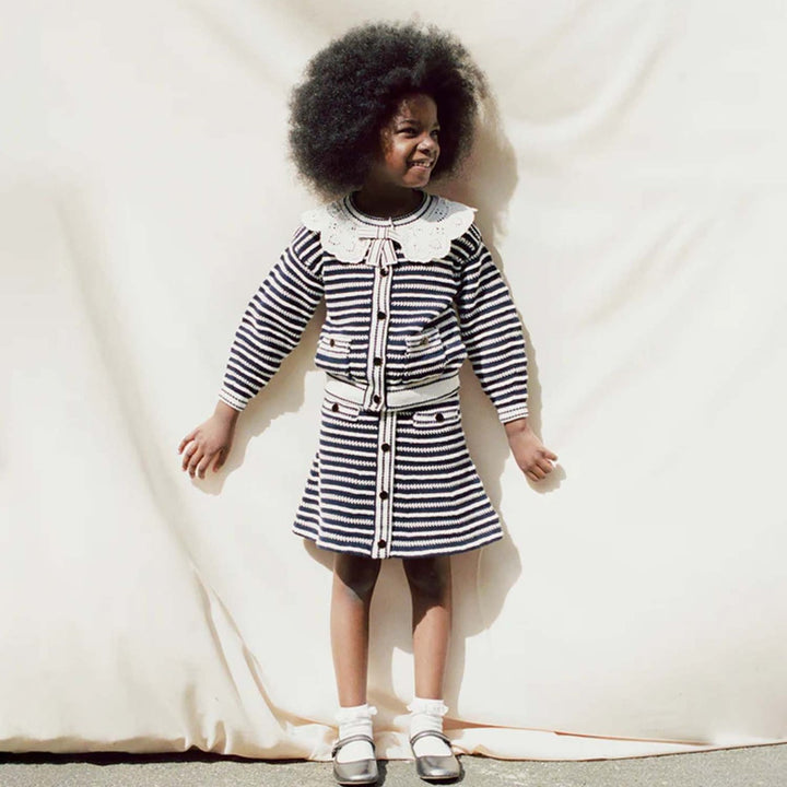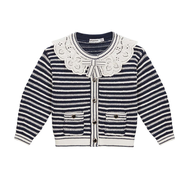 A sweet broderie anglaise collar gives this knit cardigan a polished yet whimsical touch. Cut from a comfortable cotton wool blend, it's adorned with gold buttons along the front and on its pockets, simply perfect for a day by the sea. Pair it with our matching skirt and trainers for a full nautical look.