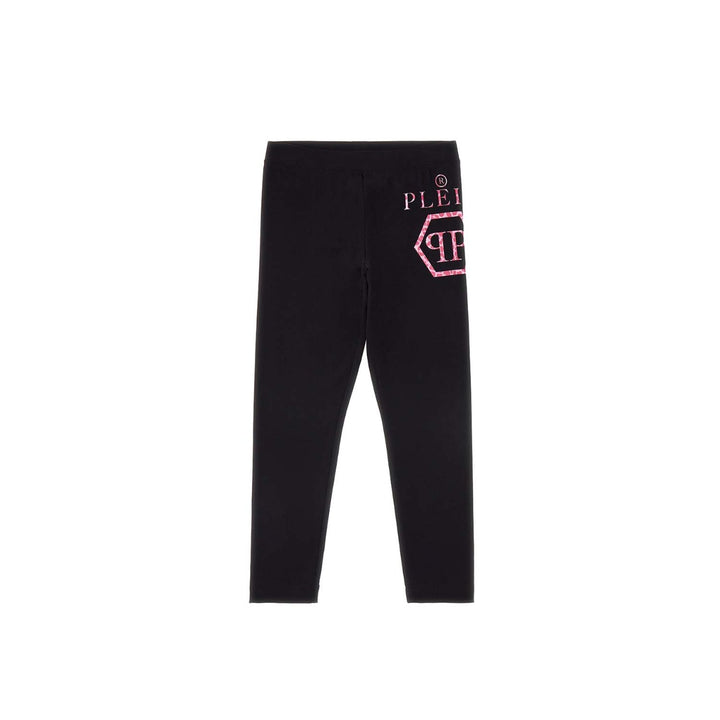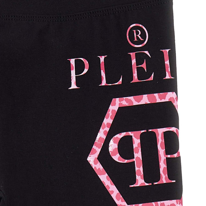 Black Logo-waistband leggings from Philipp Plein Junior featuring black/white, cotton blend, fine knit, stretch-design and rubber waistband.