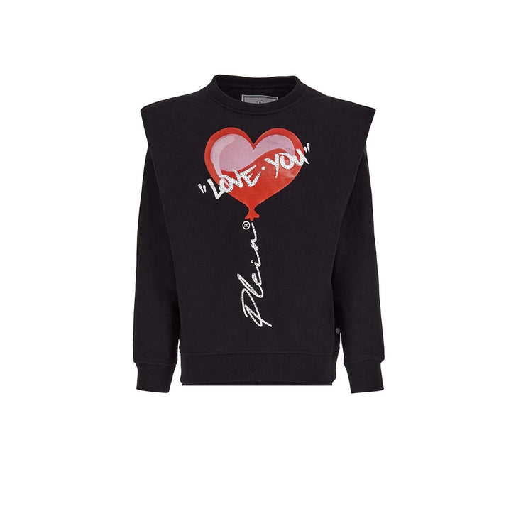 Girl Black Heart Print Tracksuit Presents By Philipp Plein.Made in soft cotton,.and a casual Round neckline and comfart Trouser full length.