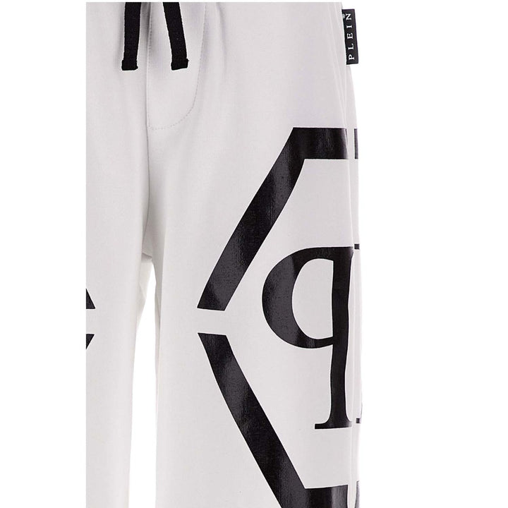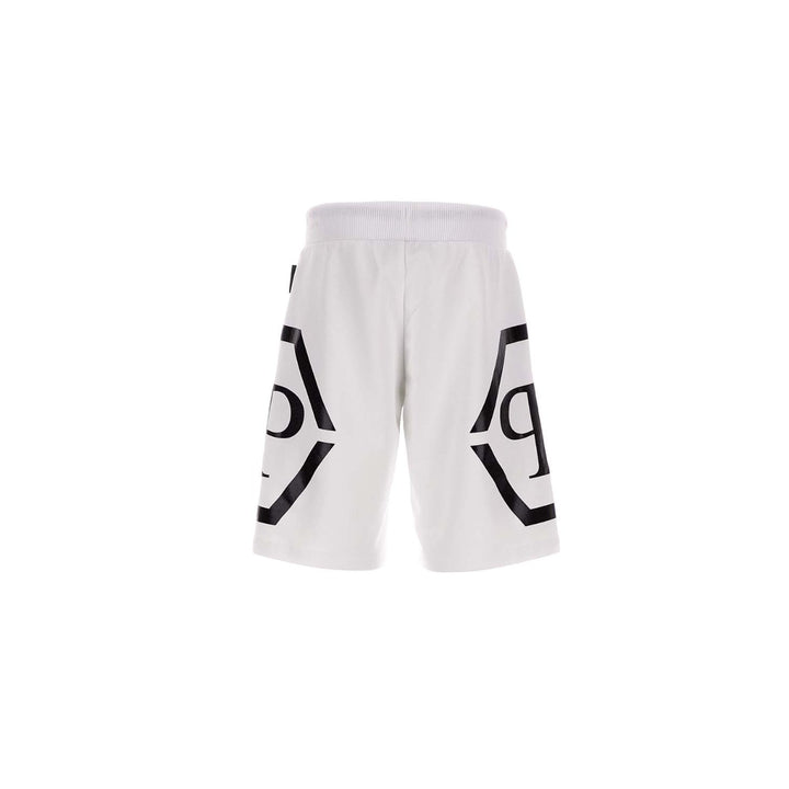 White bermuda shorts in fleece with brand logo, leather applications, solid color with print, french terry lining, multipockets, wash at 30? c, do not dry clean, do not bleach, do not tumble dry, iron at 110? c max, contains non-textile parts of animal origin.