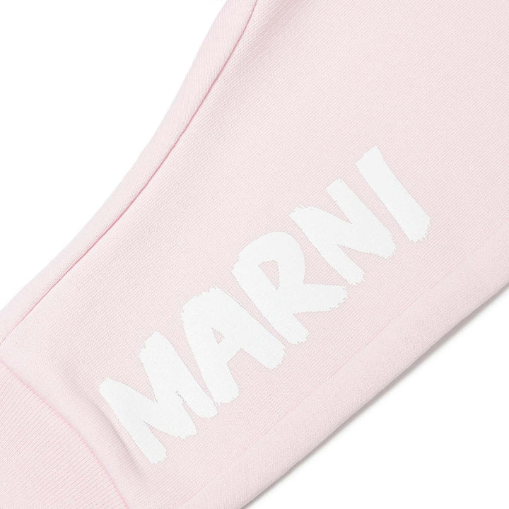 Pink joggers made of cotton with elastic waist and hem, contrasting color brush Marni logo and pocket on the back.