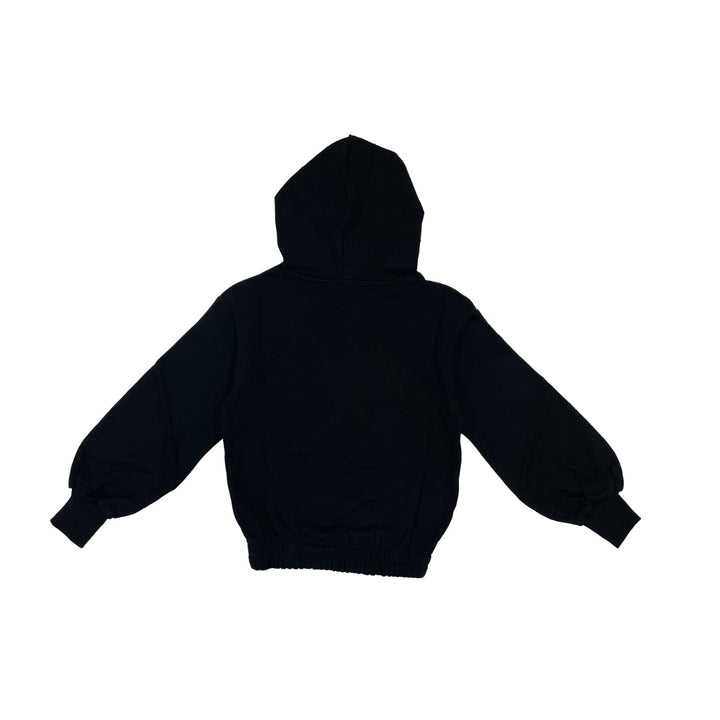 This fashionable hoodie by Pinko in color black features a breathable touch for a modern appeal. This regular-fit kids hoodie has debossed a nice logo in front and iconic graphic artwork in centre of chest. The interior of the hood is lined while the hem and inner collar feature idiosyncratic labelling. It has a modish hood collar with full sleeves as usual.