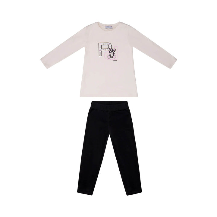 Girls Cream & Black Leggings Set