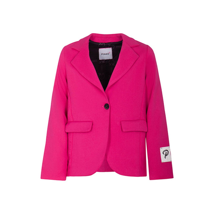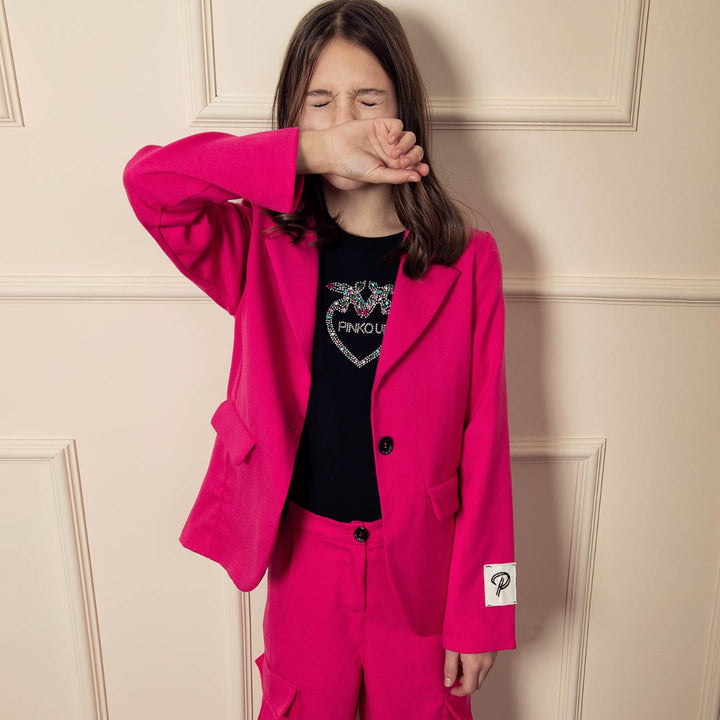 Girls Pink Logo-Patch Single-Breasted Blazer