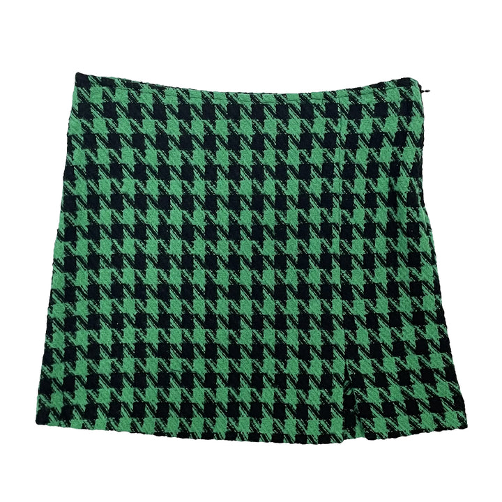 checked olive green solid mini skirt, has a concealed zip closure, a straight hem, and an attached lining. It can br worn with a pair of stalikings and overcoat for your kids winter look.