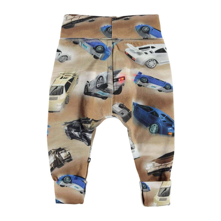 San Is a pair of organic baby trousers with a race car print. They have wide, folded elastic at the waist and legs. This Molo product is GOTS certified organic, which means that it is made with certified organic materials and produced under the strictest social and environmental standards throughout the entire manufacturing process. In addition, the GOTS certification secures that the product is free of hazardous chemicals. This Molo product is GOTS certified organic by Ecocert Greenlife, certification number 197496.