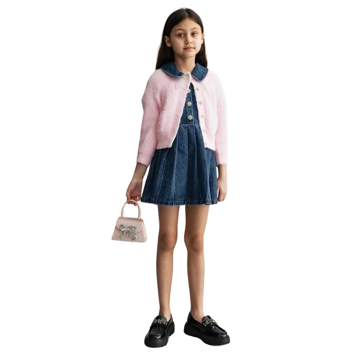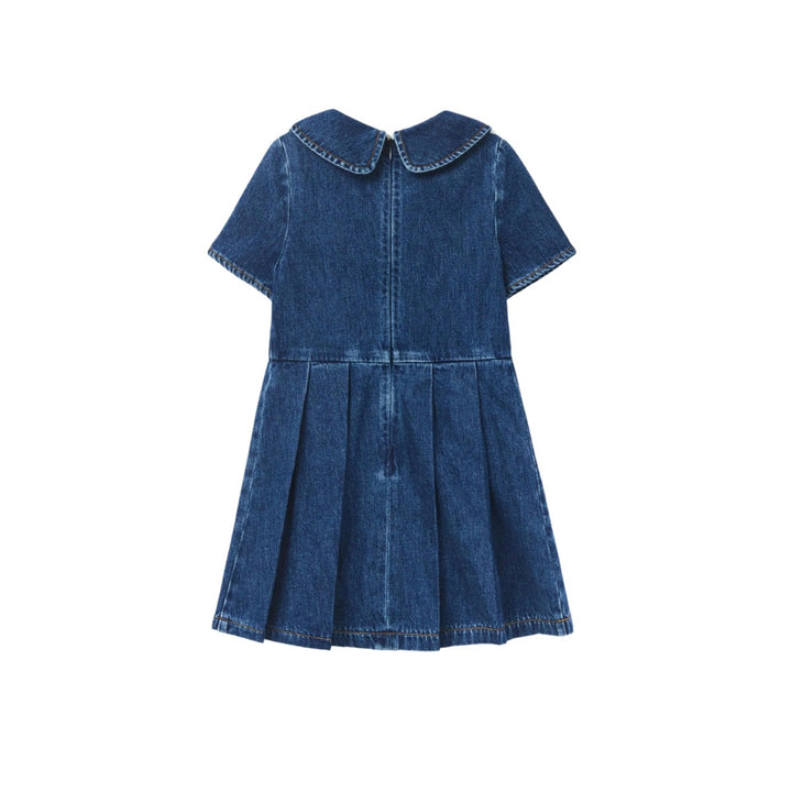 Girls Blue Denim Pleated Dress