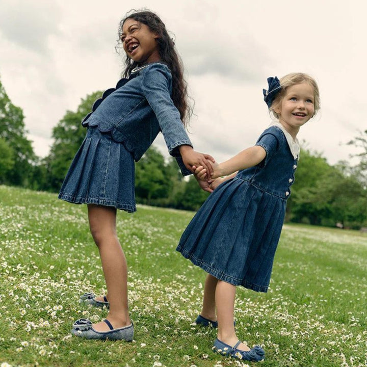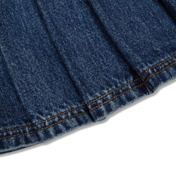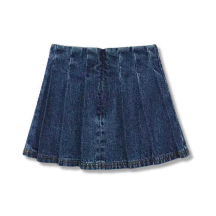 Crafted from soft yet sturdy blue denim, this skirt is playfully pleated for an ultra-wearable result. Style with the matching jacket and ballet flats for a picture-perfect holiday look.