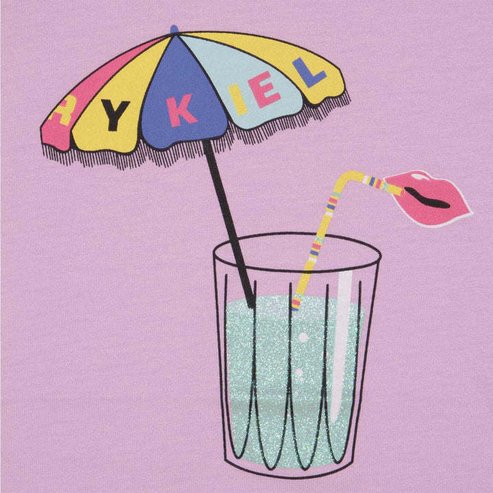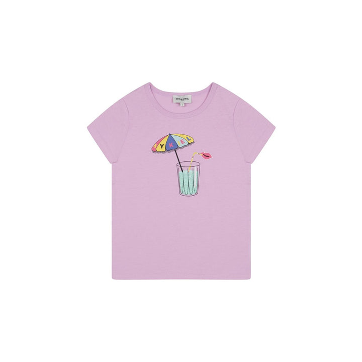 Girls Purple-print short-sleeve T-shirt from SONIA RYKIEL ENFANT featuring lilac purple, cotton, jersey knit, graphic print to the front, logo print to the rear, round neck, short sleeves and straight hem.