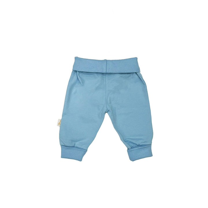 A pair of BLUE joggers for baby boys and girls from Sophie la Girafe. Made in comfortable, mid-weight cotton jersey, they have the famous giraffe icon embroidered in blue by one of the front pockets. The elasticated waistband is for a comfortable fit.