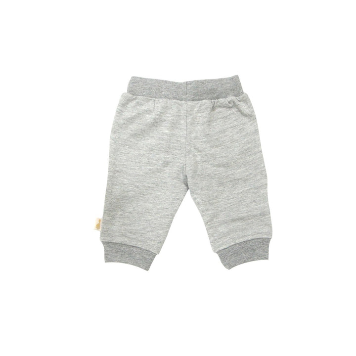 For little baby, here we have this pair of warm grey joggers that features pockets on both sides and comes with a drawstring on the elasticized waistband. Also, there is an elasticized band on both the leg ends of the joggers. It features embroidered branding on side of the joggers.