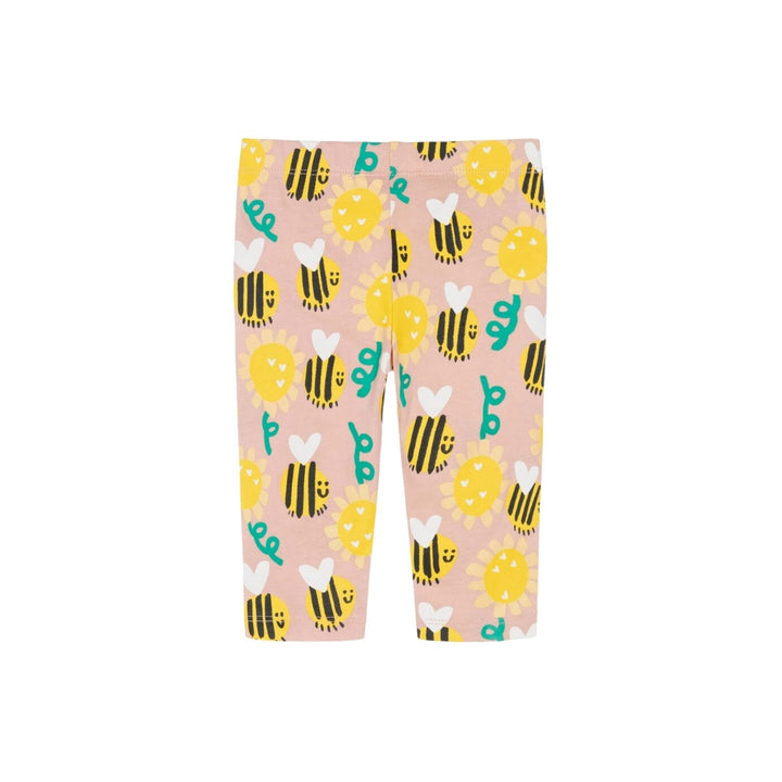 Sweet pink leggings for little girls by Stella McCartney Kids, made in soft organic cotton jersey. Patterned with a whimsical bee and sunflower print, these playful leggings have an elasticated waist for stretchy comfort on little tummies. The Stella McCartney fit can be quite small so choose a size up if you want room to grow.
