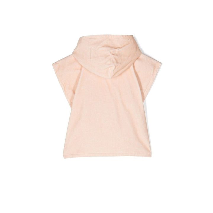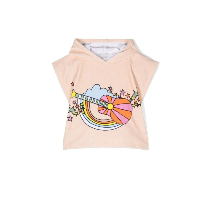 illustration-print hooded cotton robe from STELLA MCCARTNEY KIDS featuring blush pink, cotton, terry-cloth effect, illustration-style print, classic hood and short sleeves.