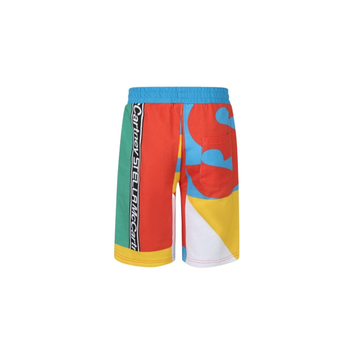 A boys pair of multicoloured shorts from the brand Stella McCartney. These jogger-style shorts feature an elasticated waist for comfort and has a pocket on both sides as well as featuring a geometric brand logo print all over.