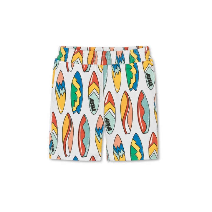 Boys White Surfboard Print Cotton Shorts