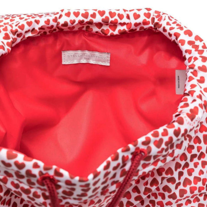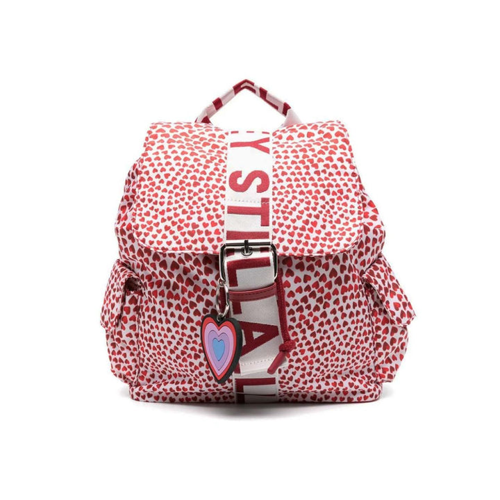 From Stella McCartney Kids for girls, a white backpack with a gorgeous red heart print. For added designer appeal, this stylish camera bag has a bold red and white web strap with a logo jacquard weave.