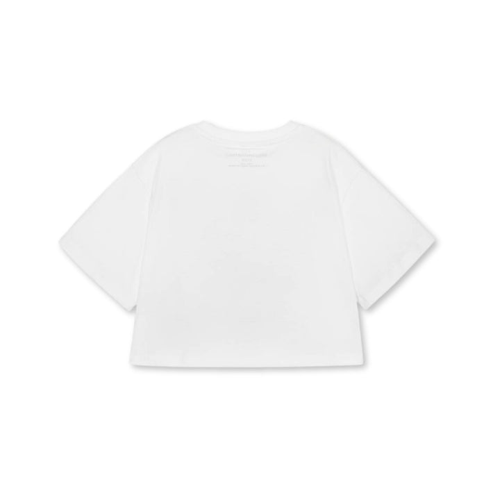 White cotton T-shirt for girls from Stella McCartney Kids, made in soft cotton jersey. Forming part of the British designer's Summer Loving capsule, it is embroidered on the front with a red heart and logo motif. This cool and casual tee is styled with a relaxed, boxy fit and dropped-shoulder short sleeves. The Stella McCartney fit can be quite small so choose a size up if you want room to grow.