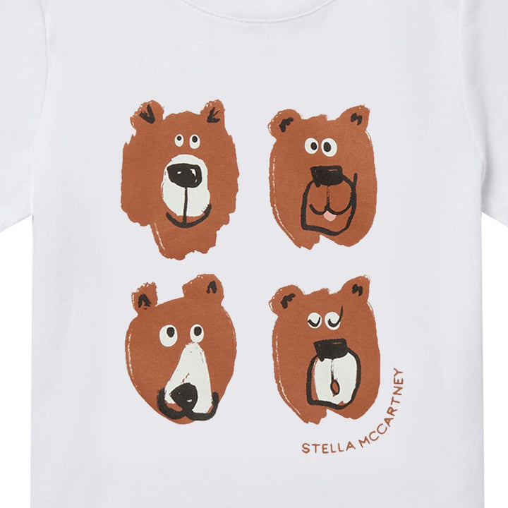 Befriend woodland bears with this t-shirt from Stella McCartney Kids. Crafted from organic cotton jersey in almond milk white, the tee features four grizzly bear face prints on the front.