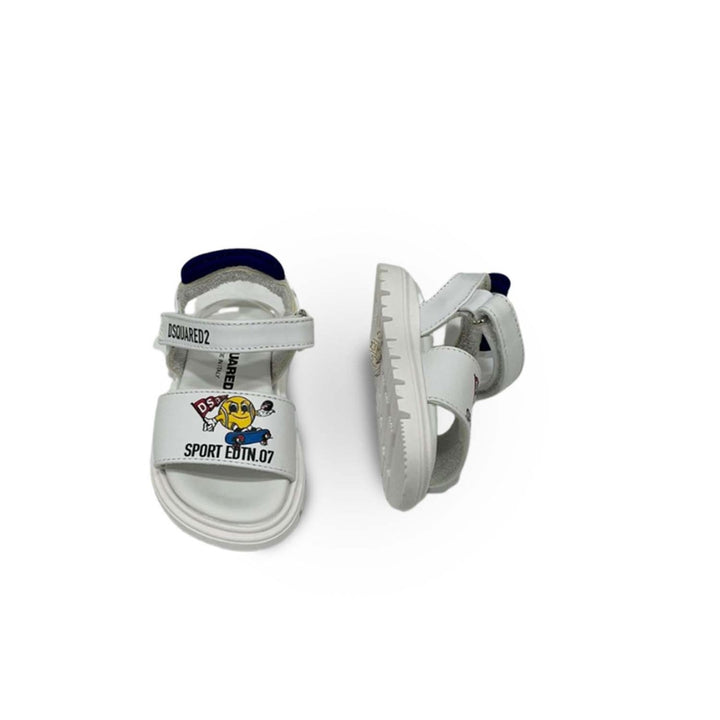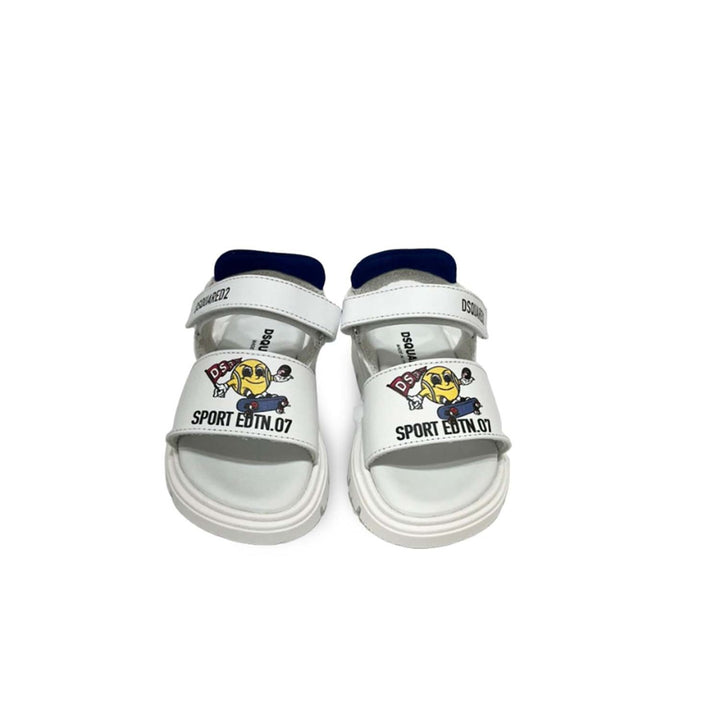 White calf leather touch-strap logo sandals from Nº21 KIDS featuring a printed logo to the front, a branded insole, a ridged rubber sole, a touch strap fastening and an open toe.