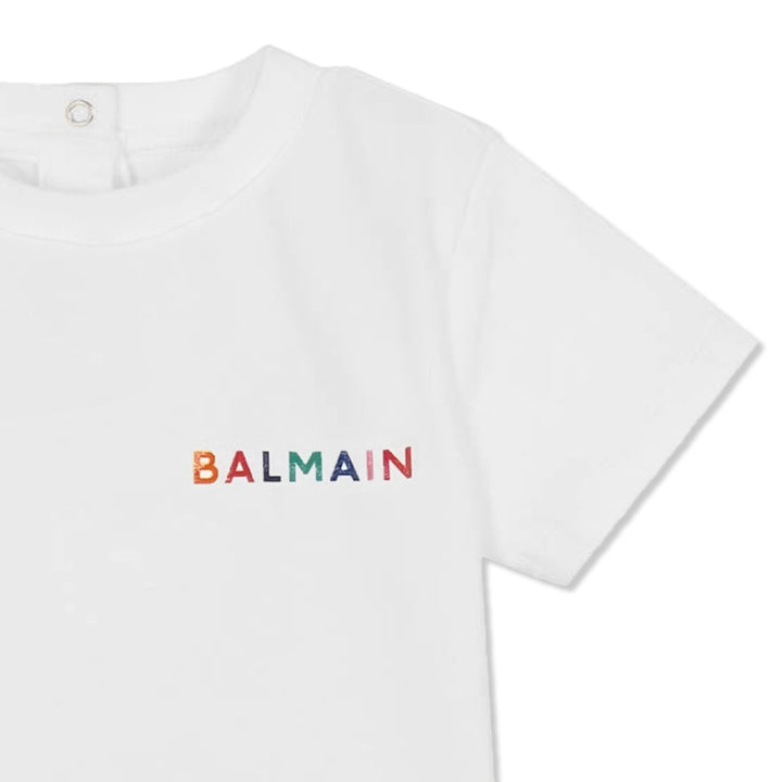 A timeless essential with signature flair, this unisex white T-shirt from Balmain is a must-have for any casual wardrobe. Crafted from soft, breathable cotton, it features a classic crew neckline and short sleeves for everyday comfort. The bold Balmain Paris logo printed across the chest adds a striking designer finish. Suitable for both boys and girls, this versatile tee pairs effortlessly with jeans, shorts, or joggers for a clean, stylish look.