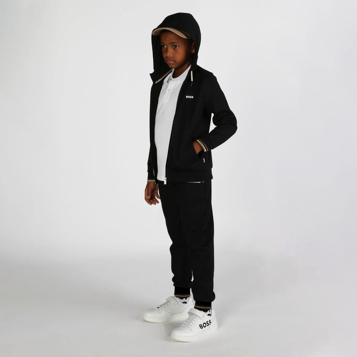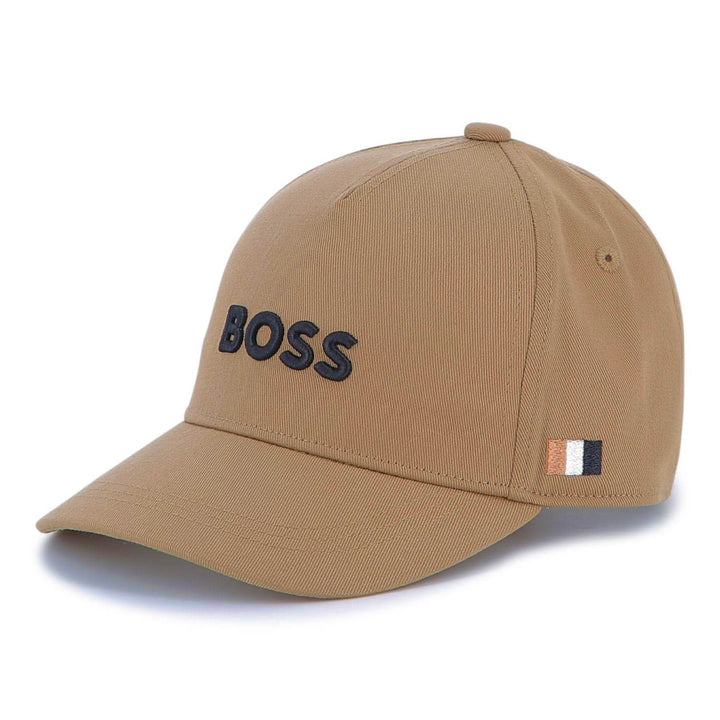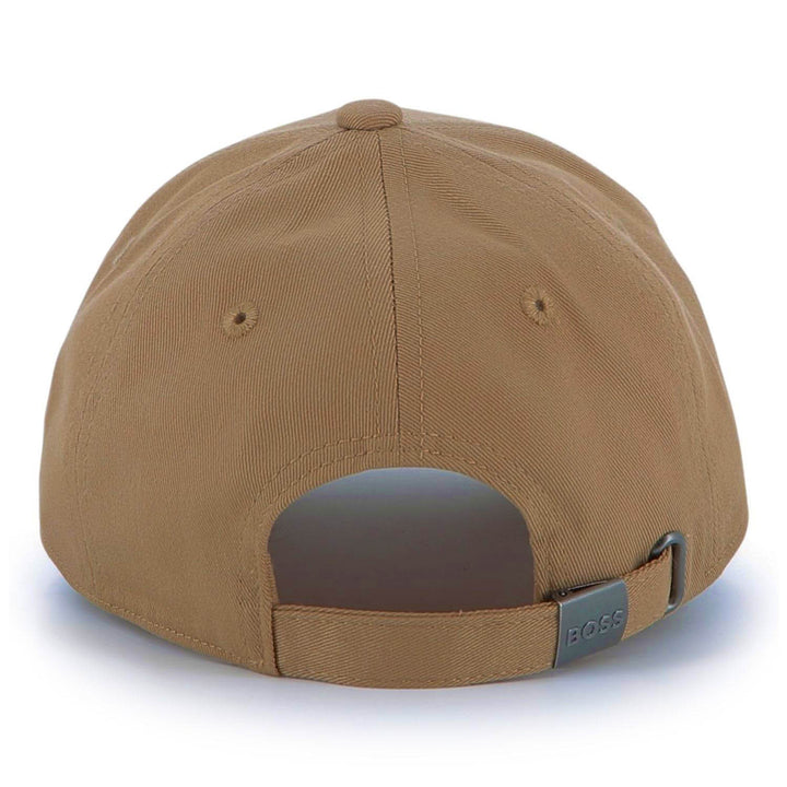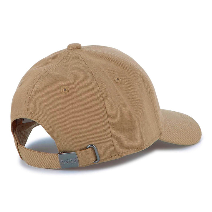 A casual beige baseball cap for girls and boys by BOSS. Made in smooth twill with a stiff peak, it features a rubberised black logo on the front for a distinctive look. The back strap has a branded metal adjustor, offering a comfortable fit.