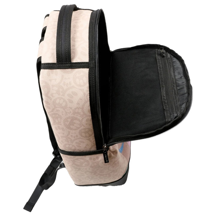 Unisex beige teddy bear-print backpack designed with a playful all-over pattern and a lightweight, durable build. It features spacious compartments and comfortable straps, making it perfect for daily use, school, or travel.