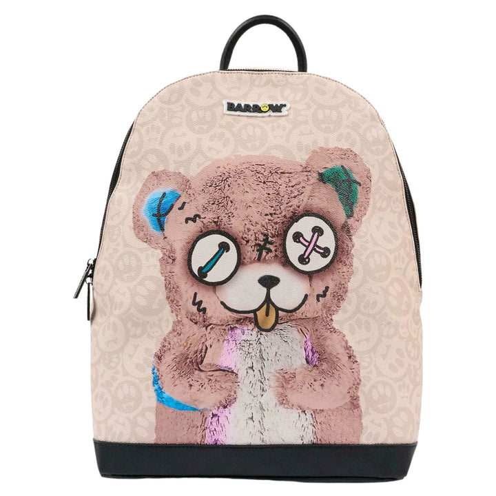Unisex beige teddy bear-print backpack from Barrow Kids, featuring a playful all-over bear design and a lightweight, durable construction. It includes spacious compartments and comfortable padded straps, making it ideal for everyday use, school, or travel.